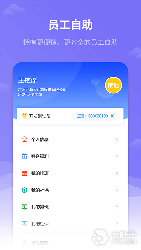 4、提供各种申请功能,用户可以快速提交自己的请假、出差、加班和调班申请