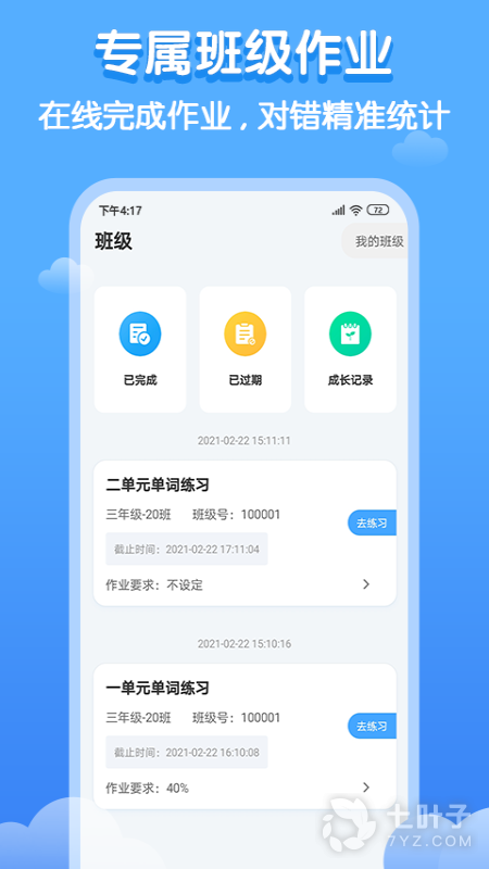 专属班级作业,在线完成作业,对错精准统计。