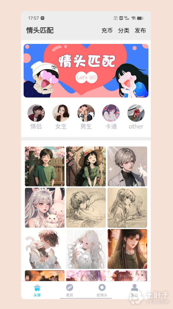 1、情侣头像配对软件,内置了丰富的情侣头像资源