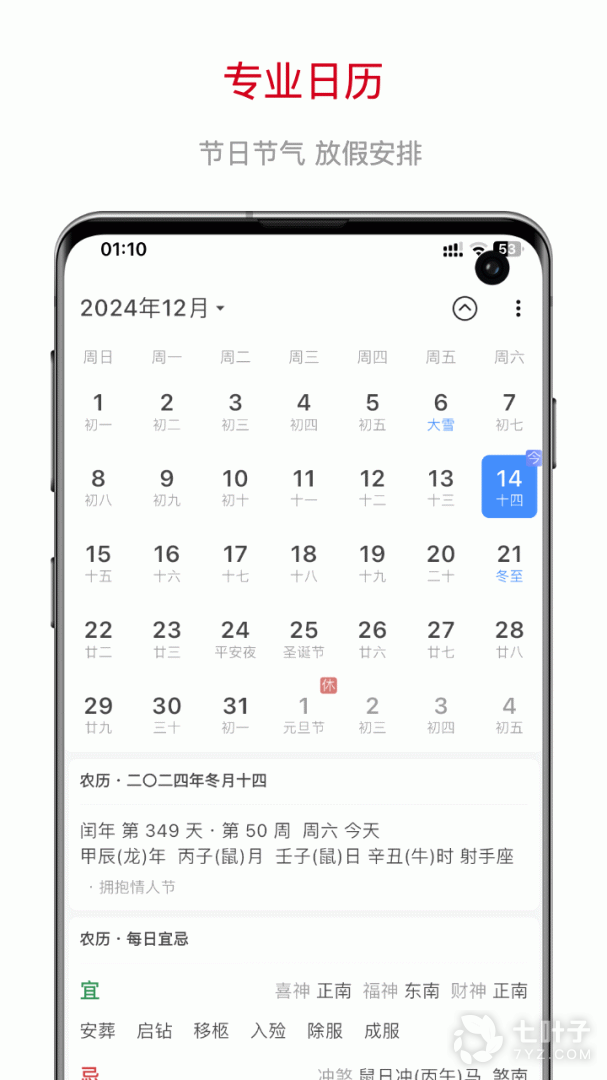 1、丰富的历法:公历,农历,干支历,黄历,万年历,信息量丰富