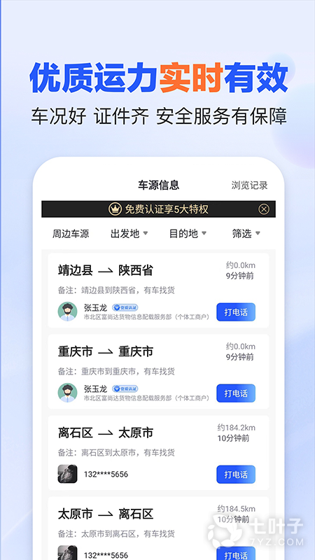 2、平台拥有海量车源货源,可以在线聊天沟通,可以查看政策资讯等等,平台实名认证,安全稳定