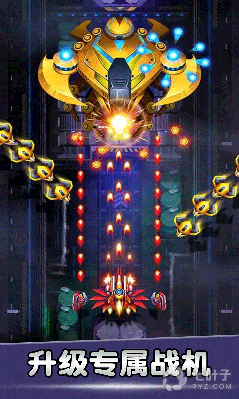 4、游戏当中玩家将会控制自己的飞机不断的进行射击,击败敌人的战机,注意躲避各种子弹光线的攻击,击败敌人的战机还有有概率掉落各种不同功能的道具可以帮助玩家,还有各种boss等着玩家挑战,尚未推出,先提供