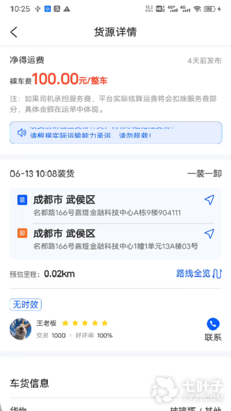 2、共运宝中所提供的订单详情非常的详细,还有货主和接货地点的详细信息