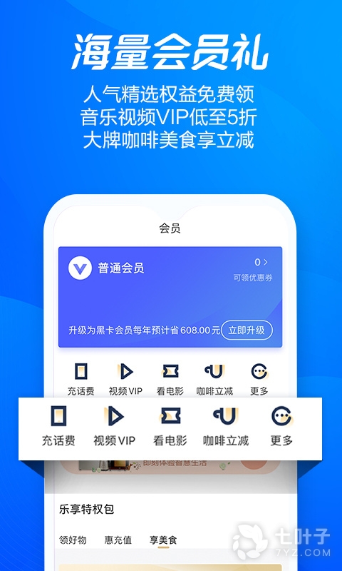 5、半价话费的充值、六折VIP视频月卡办理、大牌咖啡立减八元等优惠的服务