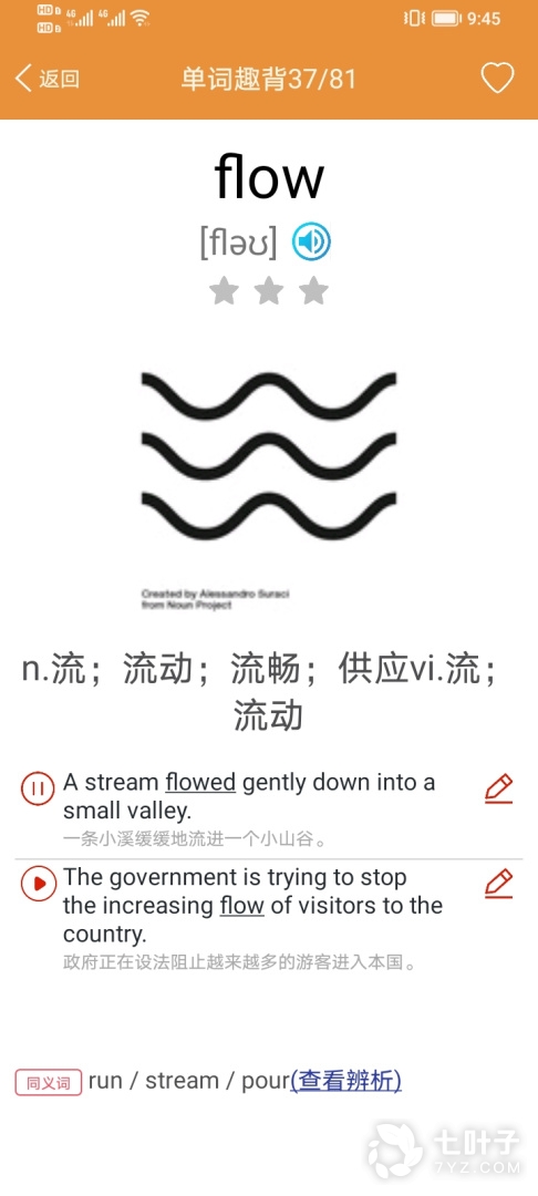 2、提供了释义、例句、练习、纯正发音等功能