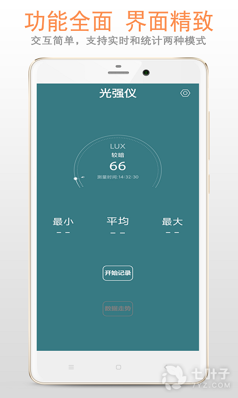 4、光强仪是一款光度测试的软件,利用你手机上面所自带的光度感应工具来进行亮度上面的测试,当然你手机所测出来的数值并不是非常的准确,只能够为你提供一个参考,而且也只能够在日常当中进行使用,过高或者过低都完成不了测试的内容