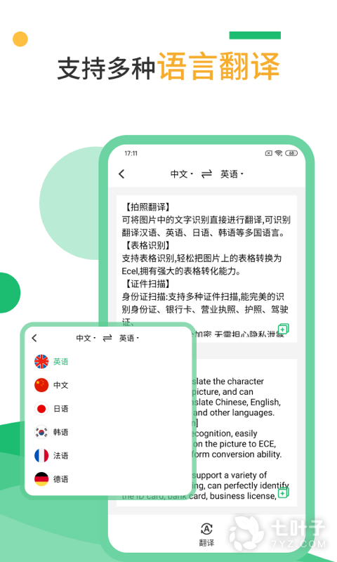 *可以对扫描的文字进行翻译,支持多种国际语言翻译。