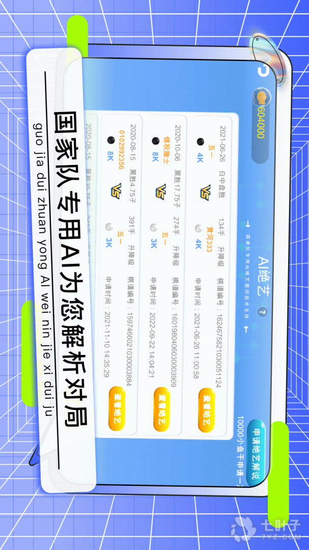 4、棋力排名:按照棋力等级进行全站排名,客观了解自己在在整体中所处的位置,持续进阶,力争上游