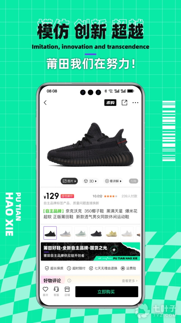 3、实时运动鞋收录,努力做莆田自主品牌、莆田鞋的百科、每天持续上架几十个鞋款、更有高清图片、穿搭视频、3D全息空间为用户打造不一样的沉浸式体验、此外还精心收录服饰、数码、美妆、箱包、手表等,筛选你喜爱的型号,放心购买