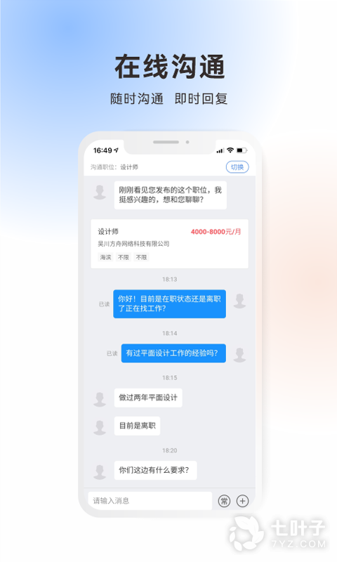 2、所有的工作都会推荐的精准,还会和用户直接的沟通机、提高求职的效率、可以尽情的录入;