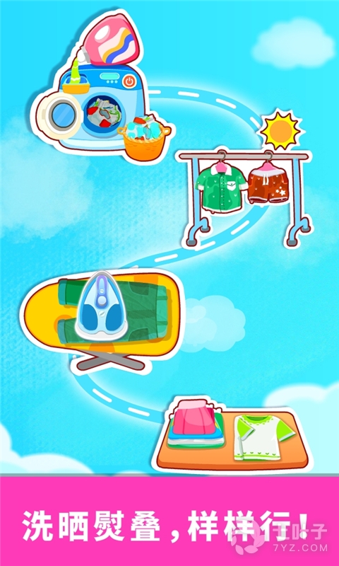 在模拟日常家务的游戏中,掌握打扫卫生的方法,培养爱劳动的好习惯,成为独立的小宝宝!