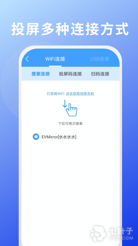 安卓系统有WiFi连接、USB和二维码三种连接方式。