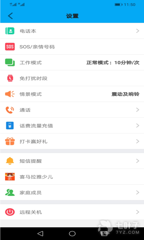 5、设置:APP可以设置SOS亲情号码,设备工作模式,监护号码,免打扰模式等。