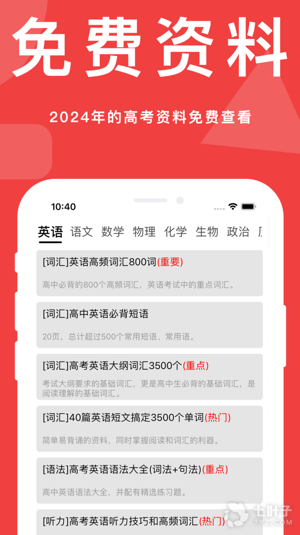 4、直击重点,有针对的学习,一定能让你的学习事半功倍!《高考真题》是一款专门为应届高考考生打造的学习教育的软件。在这款软件内,为用户们带来了丰富的练习题目的便利。软件收录了近十年的真题资源,一网为你打尽所有真题,系统包含的科目非常的齐全,九大科目应有尽有,原样真题,原样展示,随时练习