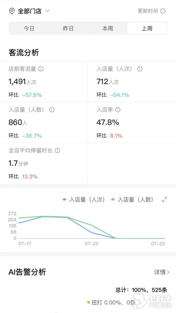 多维度的客流数据分析:支持门店进店客流分析、区域客流析、停留时长分析、热力分析等;