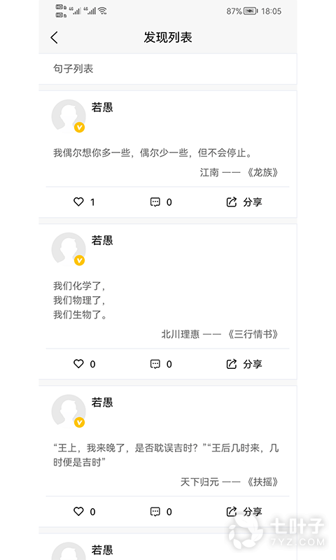 6、用户每天都可以看到一个精彩的句子,或者是名言警句,或者是经典的台词和歌词