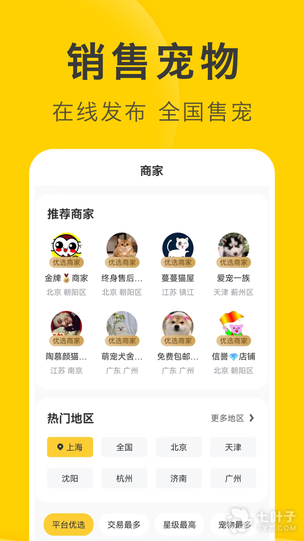 3、宠物分类和商家推荐,便于用户更好的浏览