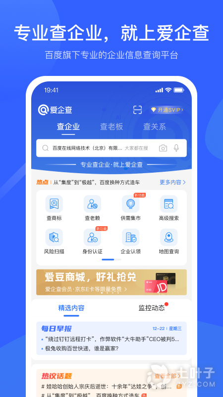 4、无论是个人还是企业,在和一个不熟悉的企业合作的时候都要很好的了解企业的信息,爱企查是大家必备的企业征信查询软件,依托互联网大数据,让大家能够一键轻松看到大家需要的信息,包括企业所有的数据报告、年报公示以及老板股东等等的信息,帮助用户及时了解,规避风险,提升商业安全