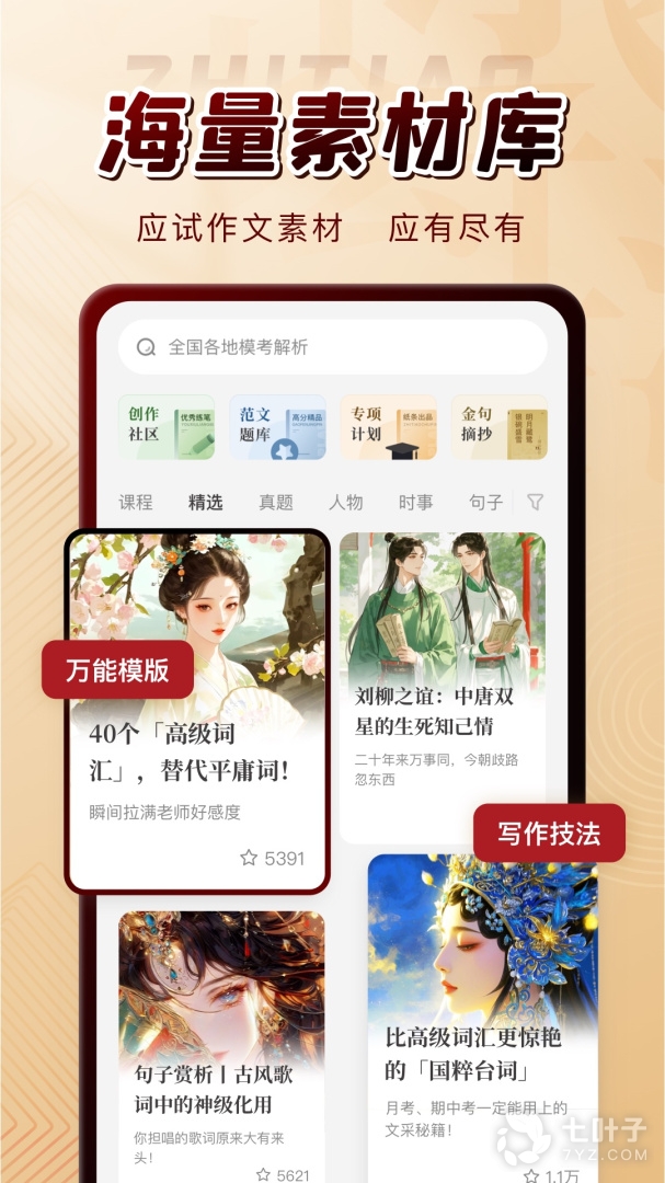 4、在这个应用里面能够帮助学生解决作文素材问题,提高学生的学习写作能力,大量的素材供学生参考,所以快来下载纸条吧