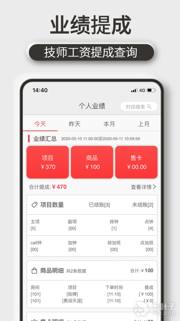 5、能够为用户计算出你每次的服务业绩信息,精准知道合计的总提成。