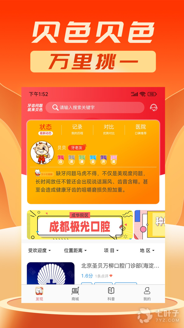 1、贝色最新版下载,一款专业专注的口腔健康综合服务社区,来贝色最新版用户可以了解更多口腔知识,与牙友分享交流,更可以查看附近牙科,有需要就下载