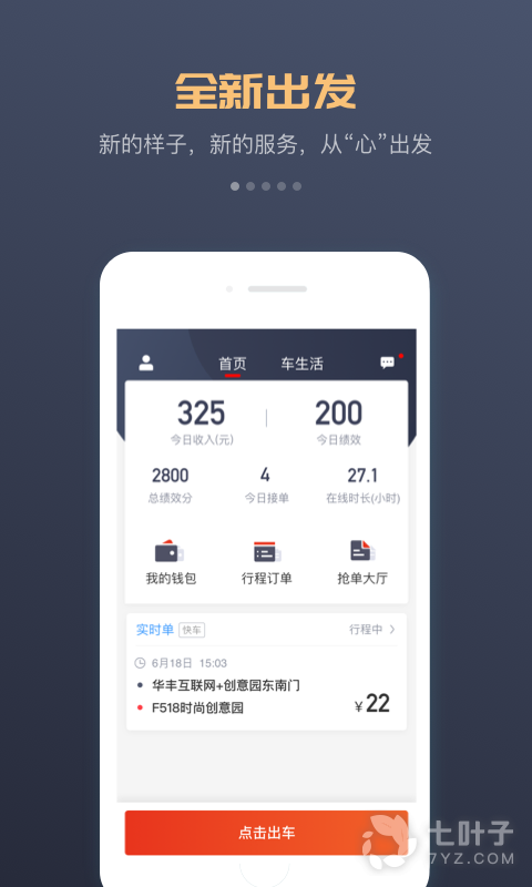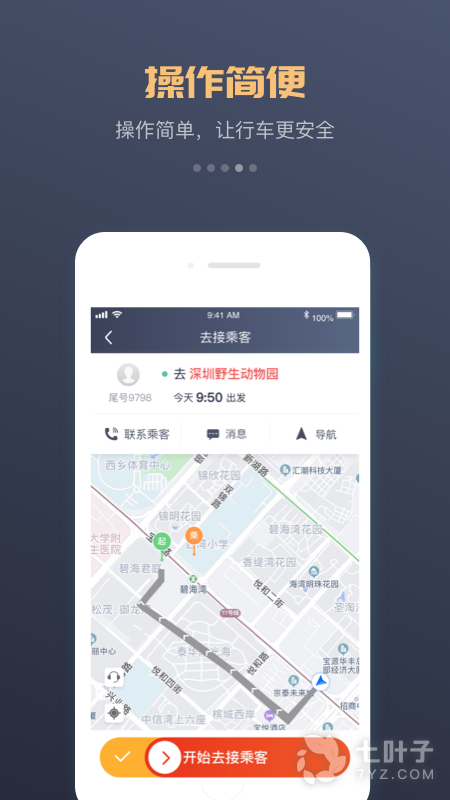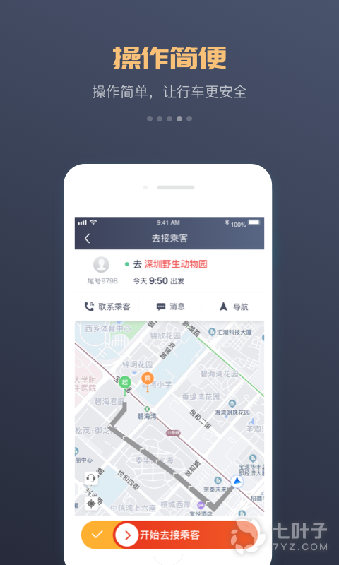 3、该软件会实时显示车主的情况,比如接单后,会显示去接乘客中、乘客已上车、订单完成等;