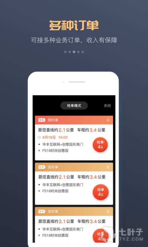 1、每天可以实时接单,同时接快车单、拼车单等,完成订单即有收入;