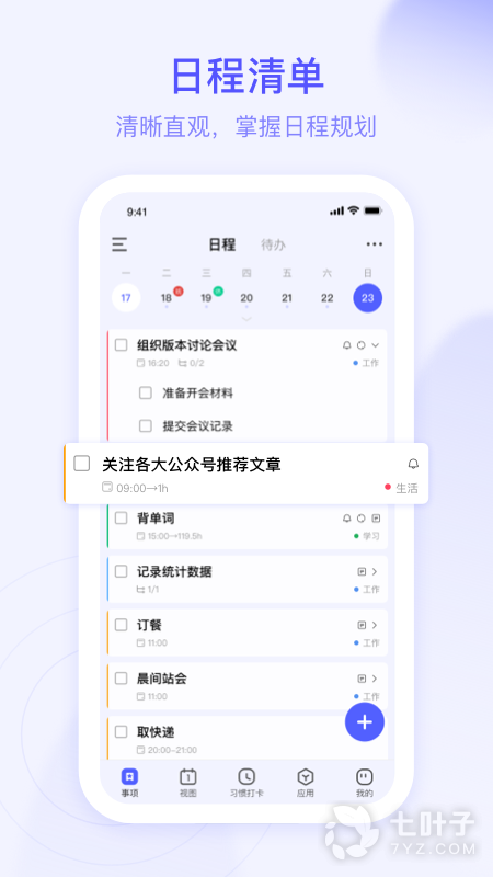 详细的计划清单日程安排提醒,有序的习惯打卡安排,还有帮你记录自己身边家人朋友重要日期的倒数纪念日功能。做好从早到晚- -整天规划,来朝暮计划养成良好习惯。