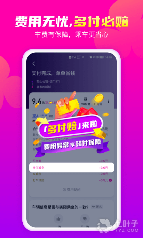 多付赔无忧体验,解决费用异常。车费有保障,乘车更省心!