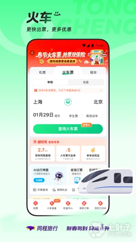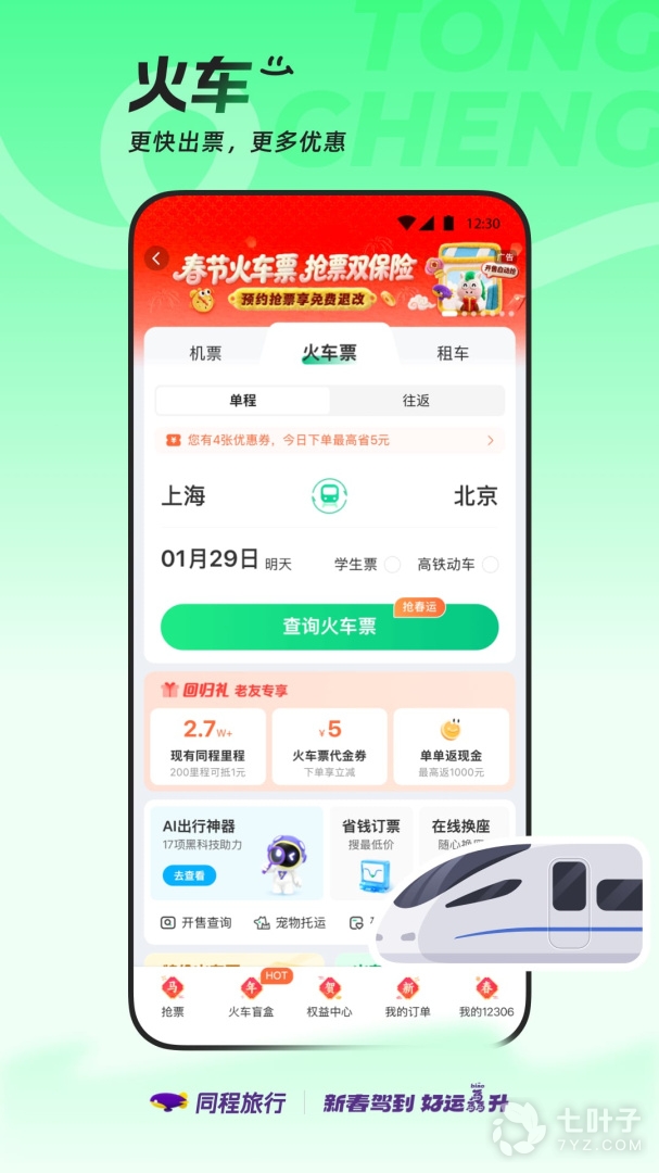 1、同程旅行最新版下载分享给大家。再出发就同程,每一次旅行都与你同行!新人注册即可领取888出行礼,酒店安心预订放心住,特价机票提前订更快更放心,火车票预约快人一步,选靠窗座位