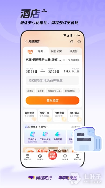 5、同程旅行最新版为用户提供一站式的旅行服务,让你外出旅游更加的方便舒适。欢迎用户使用