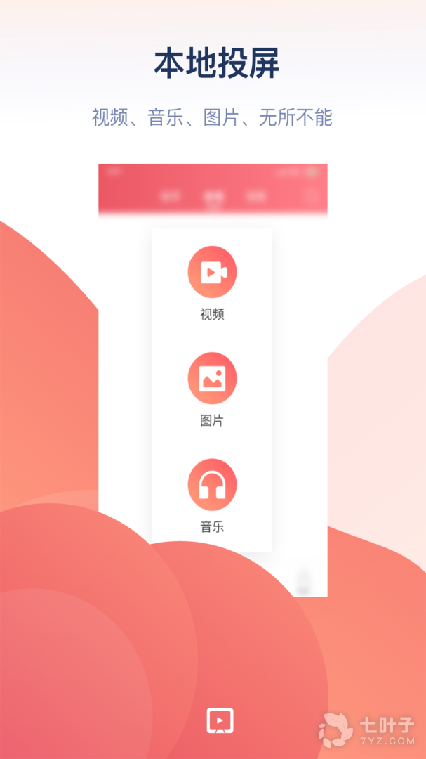 —本地音乐投屏;将手机里的本地音乐无线投屏到电视听。