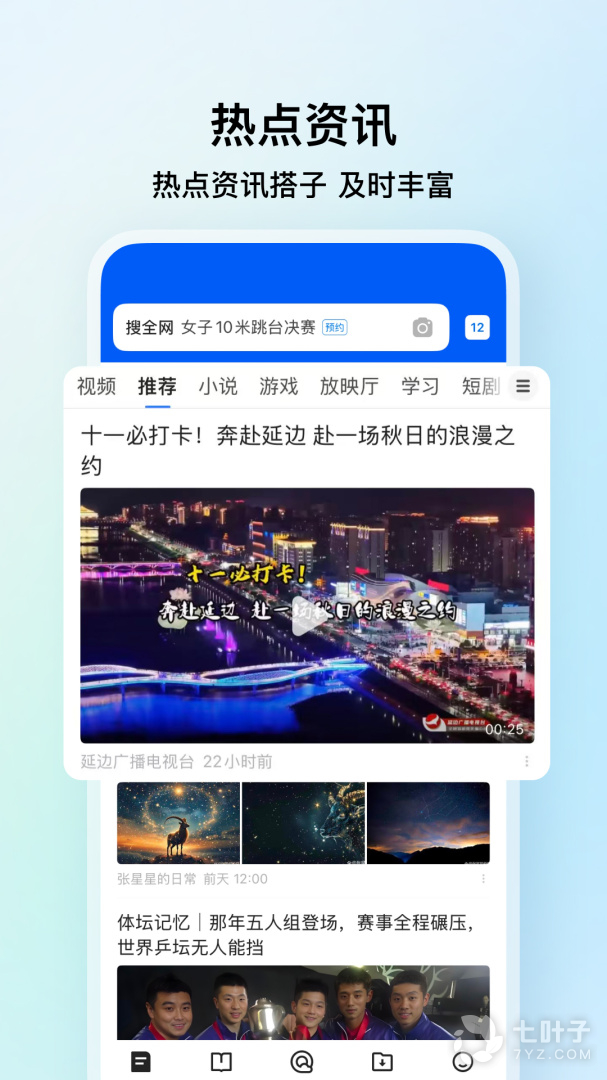 4、qq浏览器7.0是qq浏览器官方2016更新发布版本,该版本不仅拥有热点及时看,极速省流量,视频抢鲜看等诸多功能,还能够免费看小说