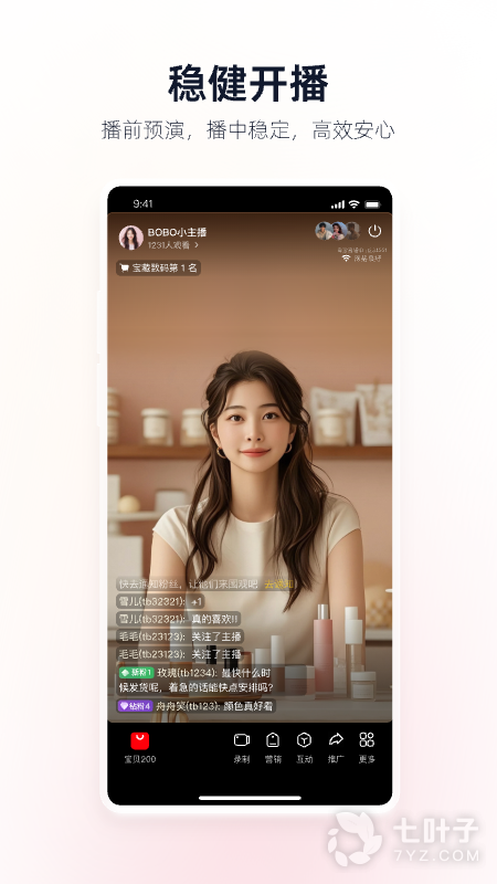 3、淘宝主播是款淘宝官方打造的淘宝直播主播端,专为淘宝上的主播而打造,功能丰富,支持连麦pk、拼团新玩法以及视频拍摄直播等等功能,现在小编为大家带来的是全新4.0.5版本,更多功能等你发现