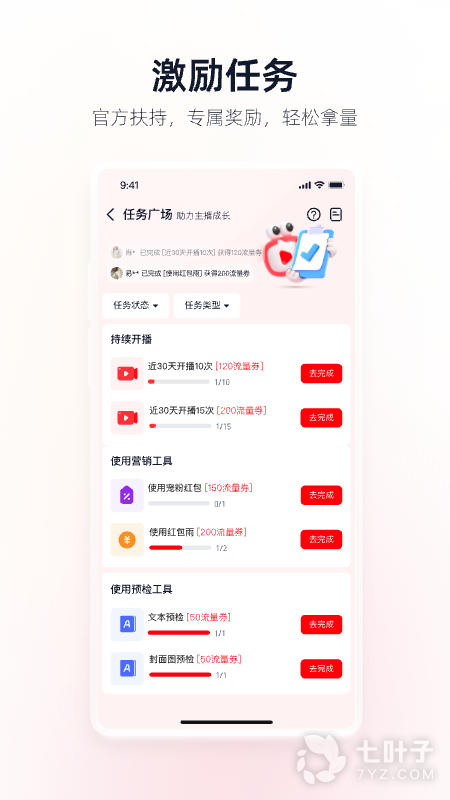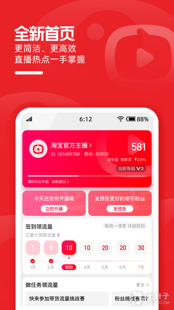 5、丰富的主播成长任务,热门的平台活动等你来参与,即使出门在外也可以直播,淘宝主播,帮助你演绎世界的精彩