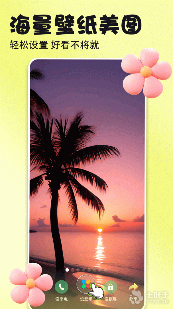 2、精心挑选呈现最美的手机壁纸,你不需要到处下载各种各样的壁纸和主题,为用户推送大量靓丽壁纸资源,全网流行壁纸资源!提供百万免费壁纸下载服务,可轻松设置为手机屏保,那就赶紧试试吧