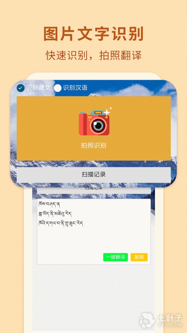 藏汉翻译通是一款非常不错的藏语汉语互译软件。实用的功能,简洁的风格设计,快速拍照翻译,极简的风格,帮助你完美的进行藏语交流,非常方便,旅游必备。