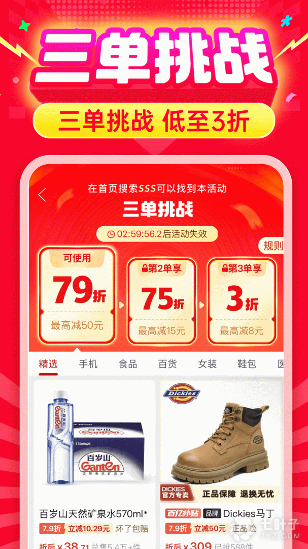 6、限时秒杀: 1元秒杀、9.9元抢购,每天多个场次秒杀,精彩多多!天天秒不停