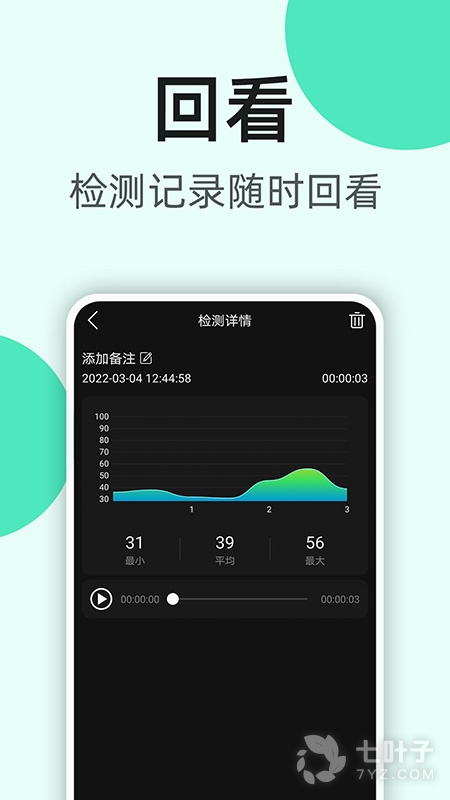 1、可以随时随地进行检测,拥有详细的分贝数值噪音表对比,帮助用户了解所在环境状态,还可以设置检测时段屏幕是否常亮,实时记录检测数据,可以更快查找历史数据,即可使用