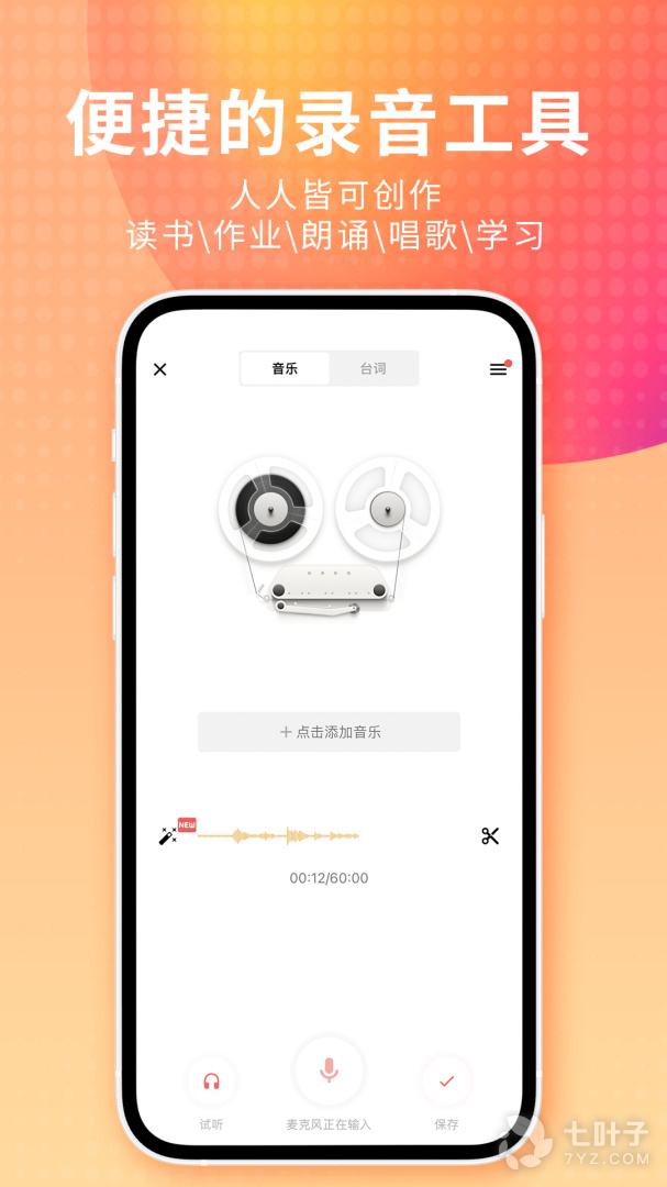 6、随心添加音乐,自动混音降噪。