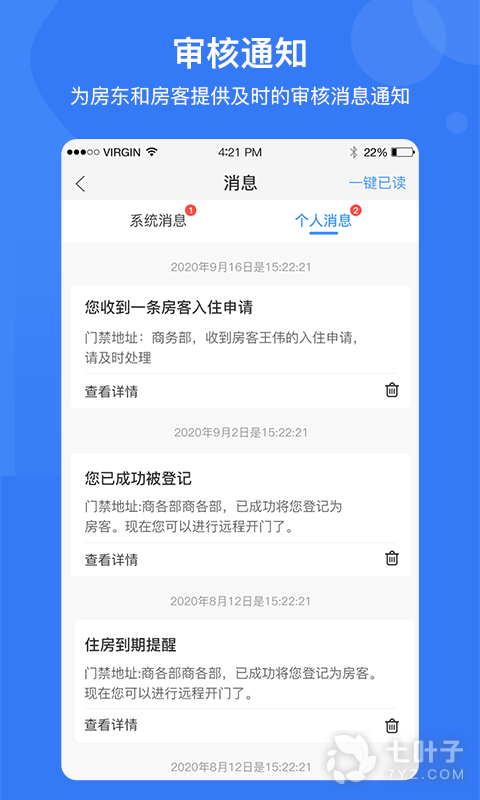 4、信息传达,随时接收小区停水、停电公告等通知,并且直达单元楼、进出随时看到;