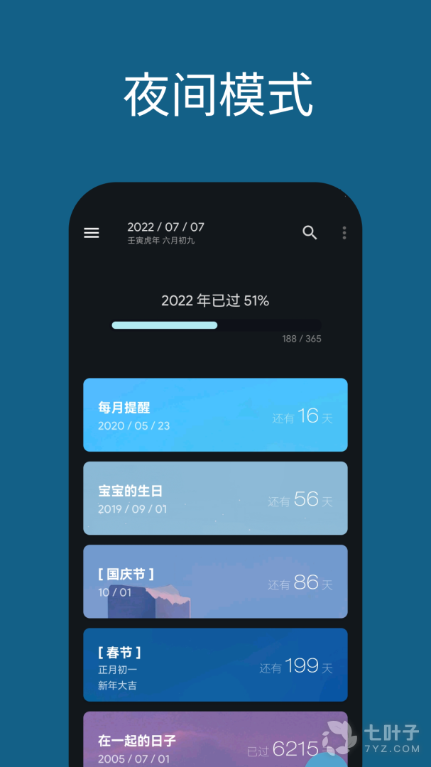 记录你那些难忘的日子(纪念日/倒数日)。