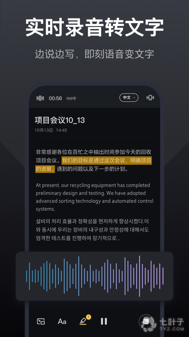 2、现在很多场景下我们都会用到录音工具,像上外教课的时候,没有听懂的话,可以使用这款录音全能王将整节课堂老师的话全部录下来,用户完全不用担心录音会录到混杂的声音,同时最厉害的一点就是,它能够全部转换成文字