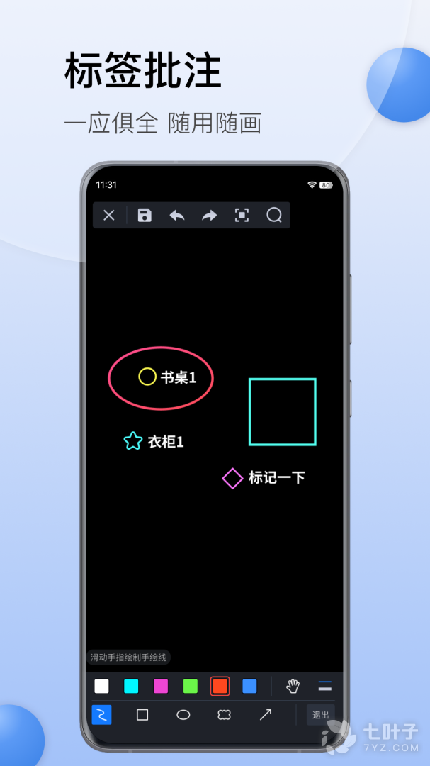 - 支持插入文字、手绘线、云线。