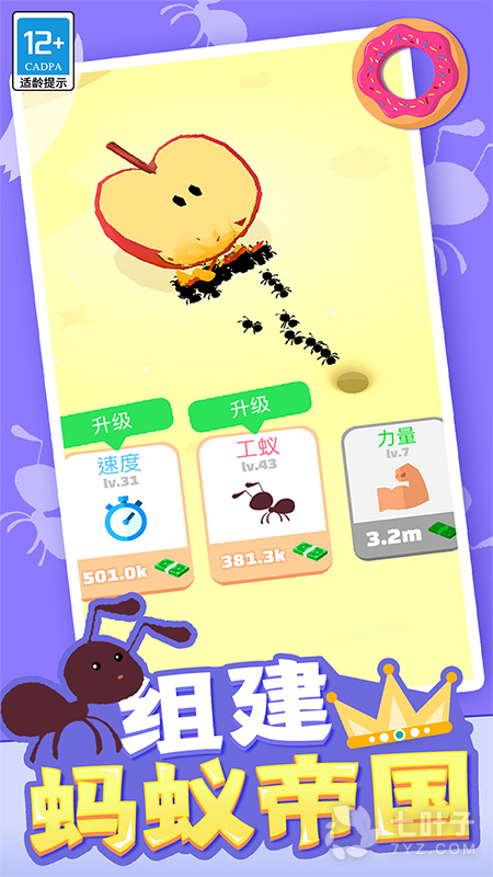 3、小蚁帝国不断的扩大你的蚁群,让它们不断的对前方发起攻击,吞噬各种食物让你的蚂蚁军团得到不断的扩展,你将以一个指挥官的身份来控制这些小的蚂蚁,对他们进行全面的引导,不断的扩大蚂蚁在所有地方的土地,增加它们的力量或者是数量