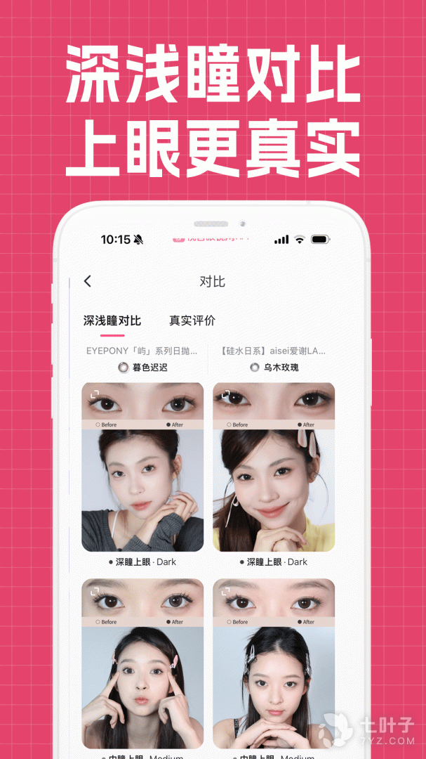 【深浅瞳对比】对于不同瞳色(深中浅)的用户都提供了可参考的佩戴图,真实评价可同步生成美瞳记录册!