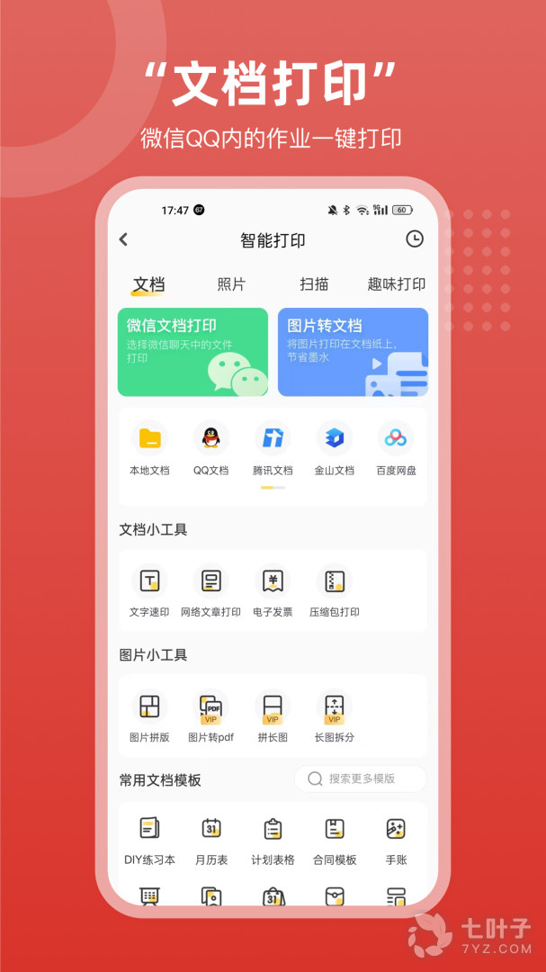 京东智印是一款手机打印助手软件,为用户提供高效、便捷、智能的打印体验。通过简洁易用的界面,智能识别文档内容,用户可以快速将手机、电脑、云端等各种设备中的文档进行打印。内置多种打印模板,满足用户不同需求,还支持多种打印设置。
