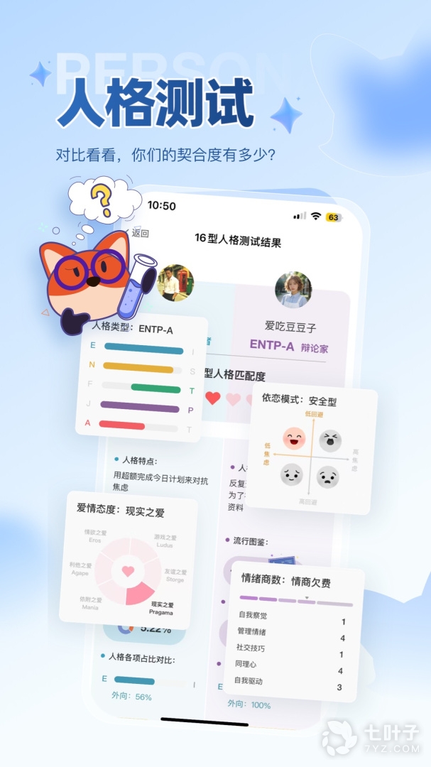 【人格匹配】通过多元人格结果,帮你快速匹配出最Match的伙伴。查看对方的人格卡片,契合指数一目了然。
