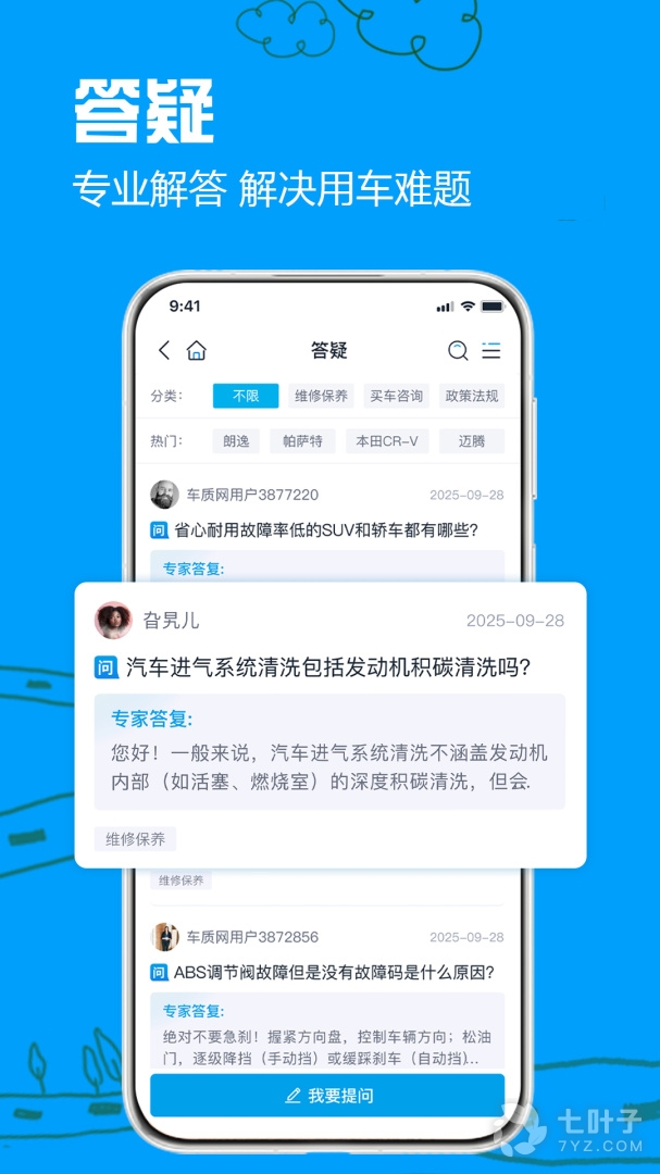 3、划分了不同的答疑专区,有维修保养、买车咨询、政策法规等不同栏
