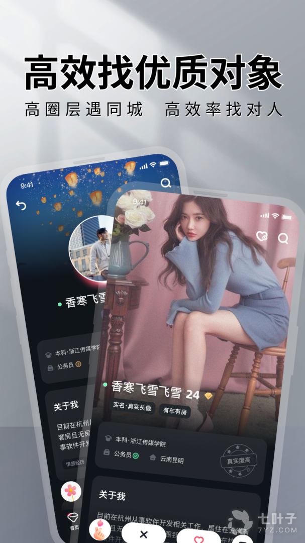 2、真实严肃的交友平台,实名认证、真人认证、房产、车辆、学历等认证确保每一位用户的身份真实